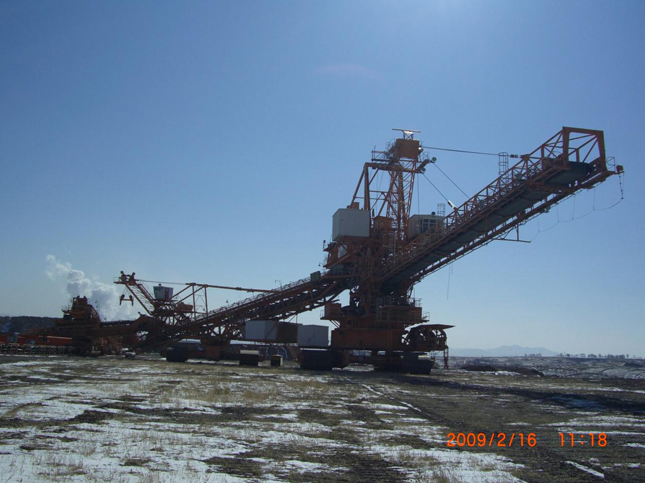 我公司早在上世紀(jì)九十年代就與曼塔克拉夫公司合作制造斗輪挖掘機(jī),現(xiàn)服務(wù)于平莊煤業(yè)元寶山露天煤礦,生產(chǎn)能力3600m3/h,從1992年投產(chǎn)直至今日,建立了良好的用戶口碑。該斗輪挖掘機(jī)為大型采礦型,線性尺寸大,可以完成組合采高40m。適用于開采工作面高且強(qiáng)度大的作業(yè)區(qū)域,可以減少工作面帶式輸送機(jī)的數(shù)量,便于連續(xù)開采工藝管理。