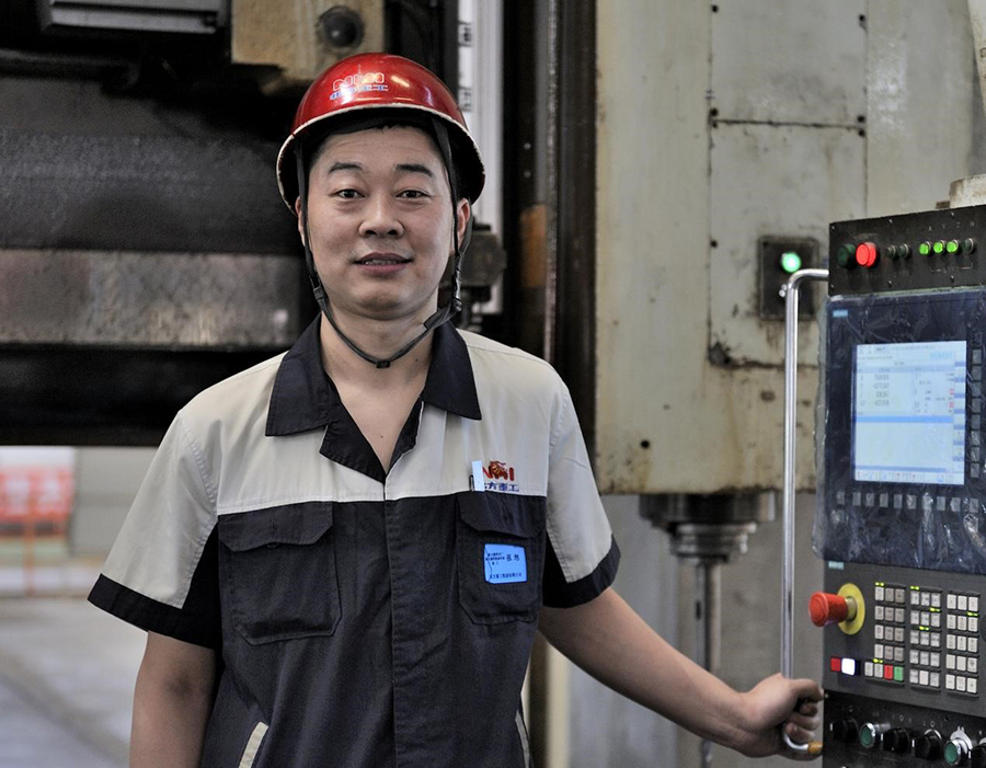 10多年來,他先后在φ260數(shù)控鏜床和φ250數(shù)控鏜床跟著師傅學(xué)技術(shù),勤奮好學(xué)的他一門心思刻苦鉆研,深得師傅們的喜歡。領(lǐng)導(dǎo)看他是個好苗子,把他調(diào)到關(guān)鍵機(jī)床——17米數(shù)控龍門銑床上鍛煉,公司里的遼寧省勞動模范、全省首批大工匠孫柏成也成為了他的師傅。能跟著勞模、大工匠學(xué)技能,張旭感到非常幸運(yùn),也更加勤奮自覺,下決心要把師傅的“絕活”學(xué)到手。班上,他跟著師傅苦學(xué)苦練,下功夫鉆研數(shù)控加工技術(shù)和技能。業(yè)余時間,他把別人消遣娛樂的大把時間用來充實(shí)數(shù)控加工理論。在師傅的言傳身教下,他的加工技術(shù)大有長進(jìn),一年后就能獨(dú)立操作機(jī)床加工復(fù)雜的工件,一步步成為生產(chǎn)攻關(guān)的骨干。